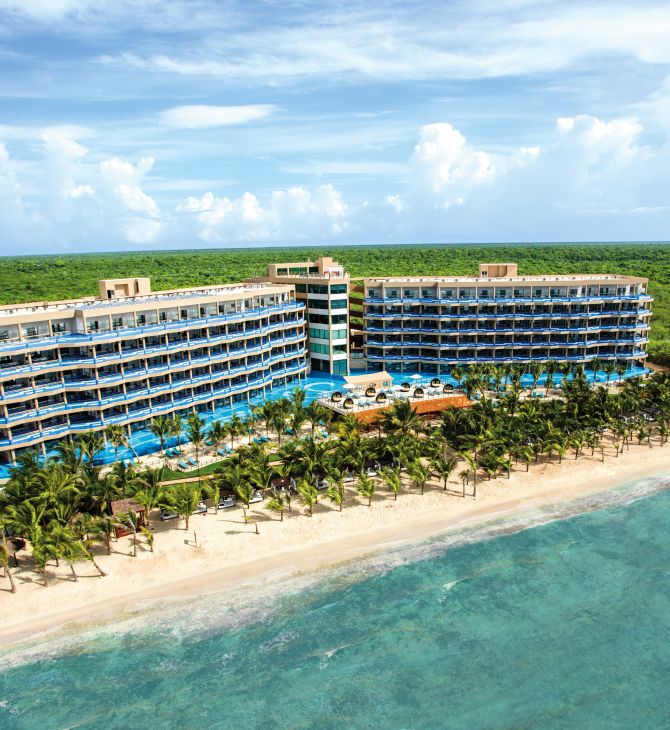 Este complejo con todo incluido se encuentra en primera linea de playa, cerca de Playa del Carmen, y ofrece alojamiento excepcional, sitios para comer, actividades para toda la familia y programas diurnos y nocturnos. El paquete con todo incluido ofrece todas las comidas y aperitivos, cocteles, bebidas y vino sin limite, un coctel de bienvenida a la llegada, deportes acuaticos no motorizados sin limite, impuestos y propinas y programa diario de actividades